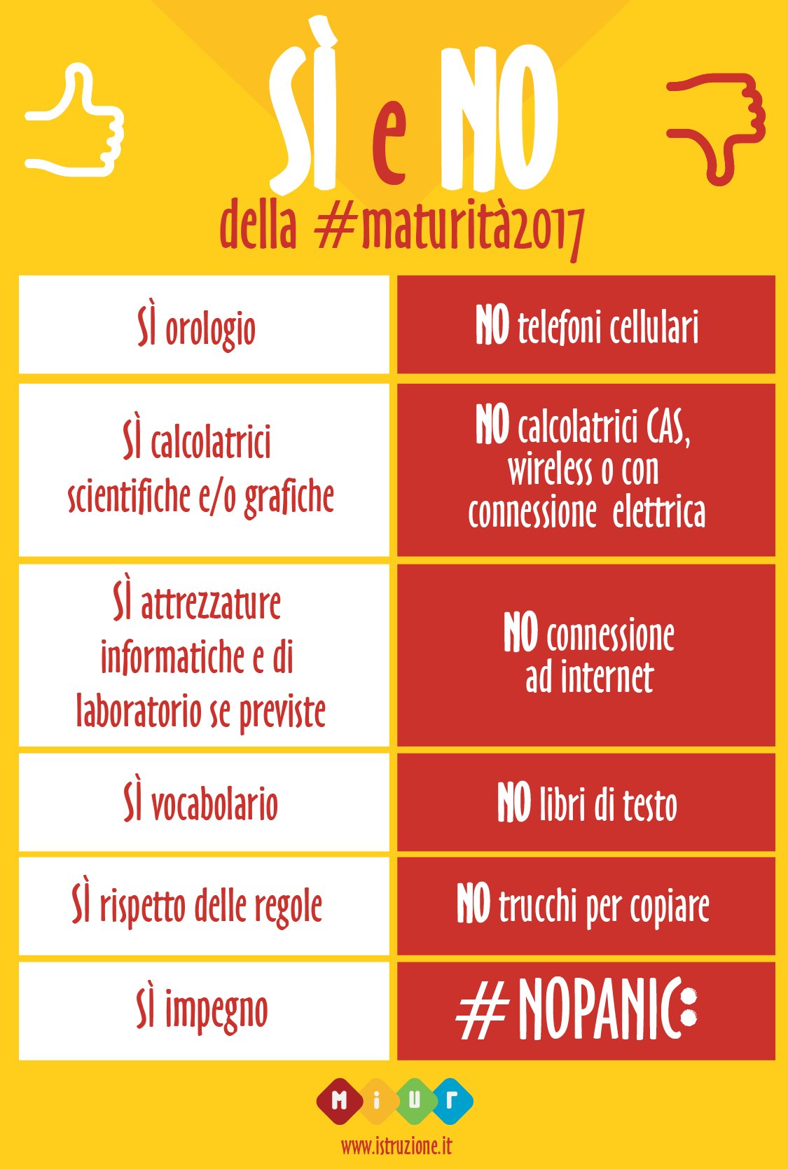 I Sì e i No della #Maturità2017. Sì impegno, #NoPanic!